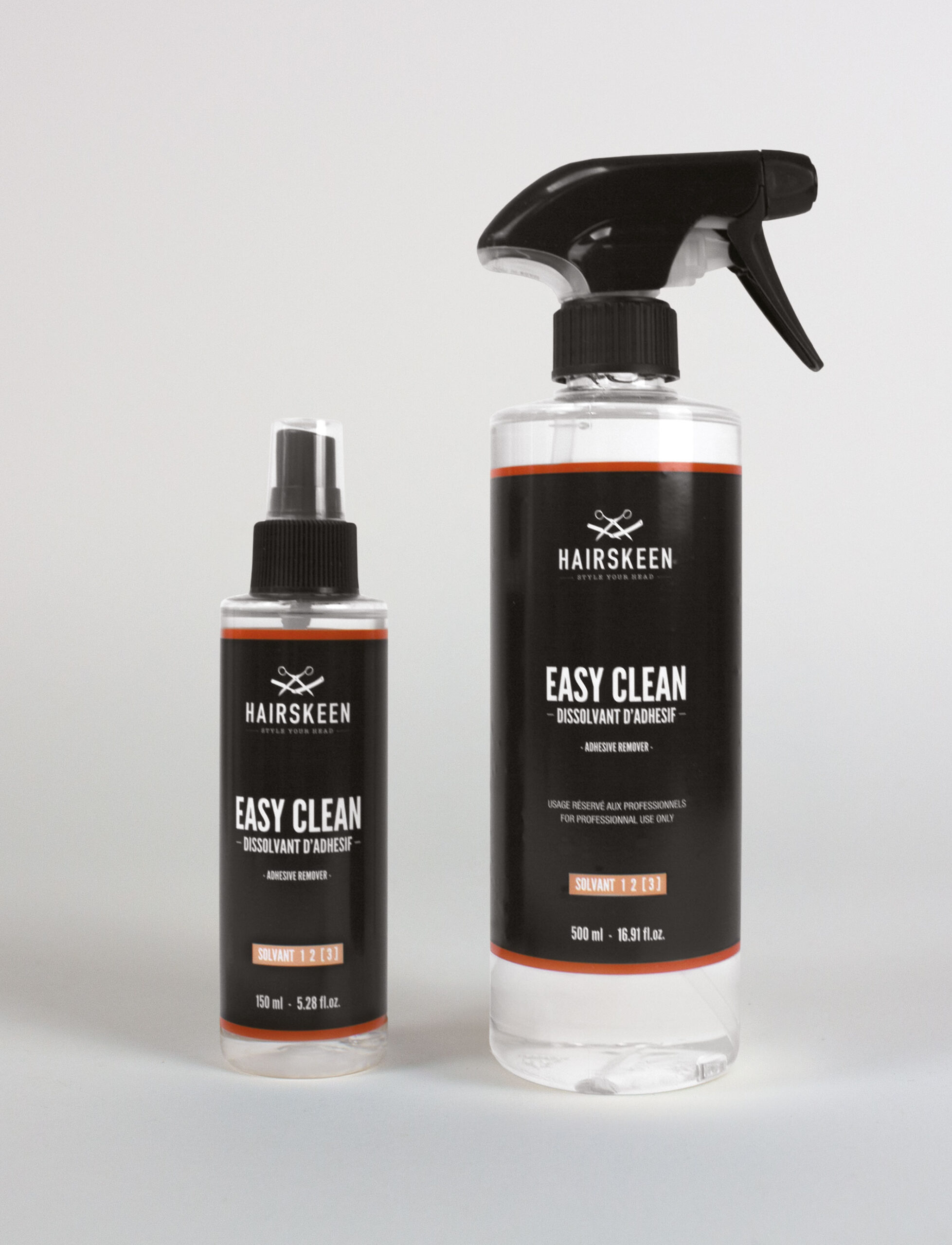 EASY CLEAN Dermal Solvent ist in zwei Größen erhältlich, 150 ml und 500 ml. Es ist sehr effektiv und entfernt schnell Klebstoff- und Hautkleberreste.